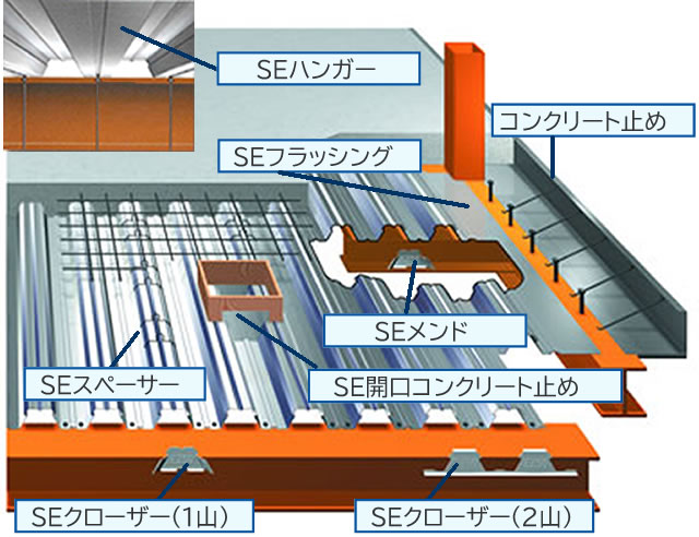 - デッキプレートに穴明けが不要です。